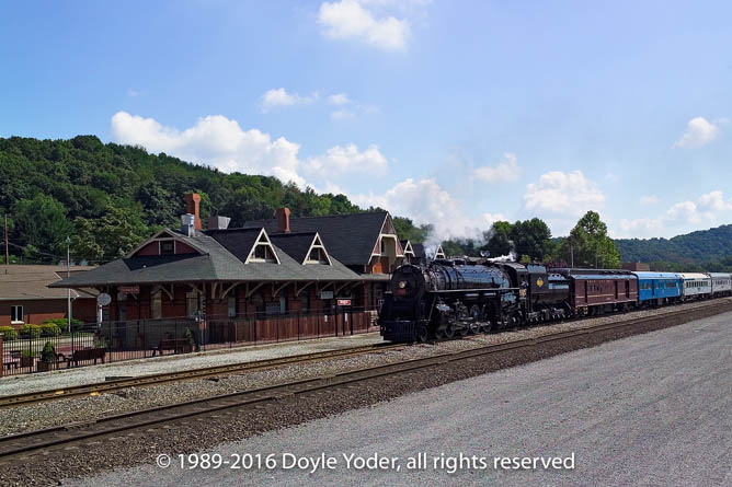RAILROADS, OH - Ohio Central Orrville Railroad Heritage Society pulled westbound by steam engine 6325 past depot at Dennison 8/14/2004